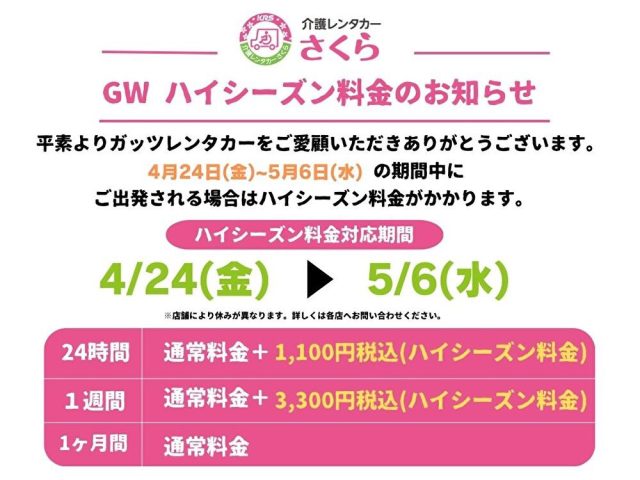 介護レンタカーさくらからお客様へのお知らせです。
